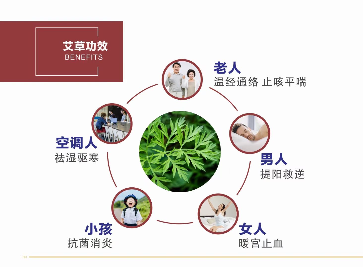 核心价值观:“家乡梦,艾草传温,祛湿助眠活络,守护万家安康。